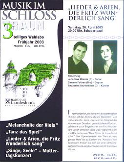 Am 26. April 2003 gestalteten wir ein Konzert in Memoriam an Fritz Wunderlich im Kulturschloß Traun Österreich - bei Linz