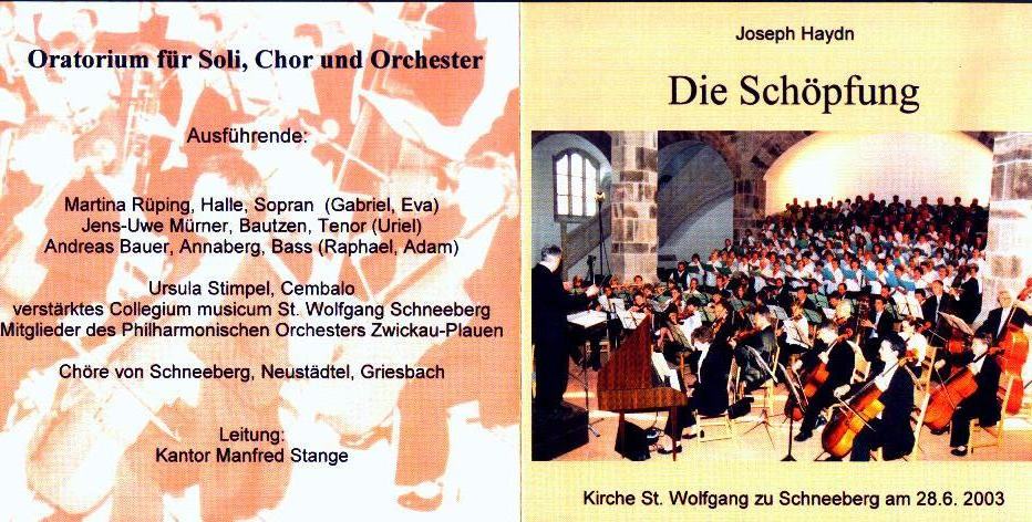 Live-Aufnahme “Die Schöpfung” von J. Haydn in der Kirche St. Wolfgang in Schneeberg. Erhältlich über den Kantor der Kirche St. Wolfgang oder J. U. Mürner Und Gott schuf den Menschen / Mit Würd und Hoheit angetan / Aus Rosenwolken |